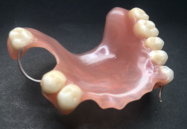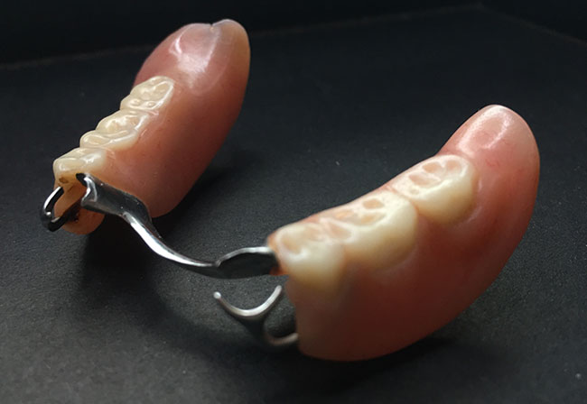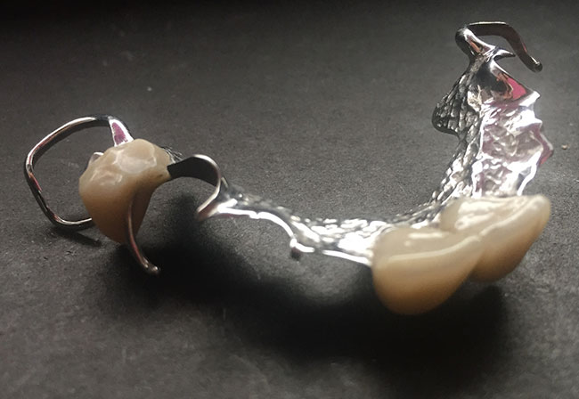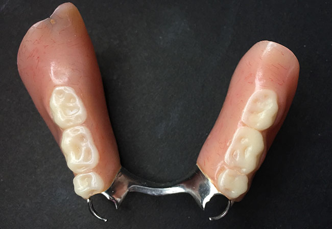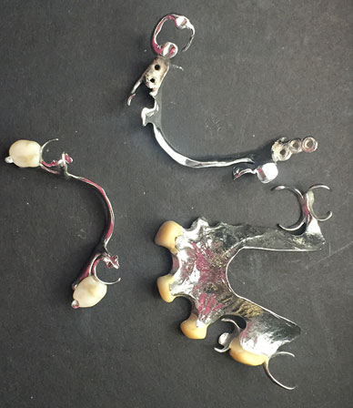Trzon - szkielet takiej protezy wykonany jest ze specjalnego stopu metali, na tej konstrukcji umocowane są zęby akrylowe. Protezy szkieletowe są jednym z najlepszych rozwiązań. Plusem tej protezy jest to, że opiera się na własnych zębach pacjenta, posiada ciernie oraz klamry. Niestety nie są to elementy kosmetyczne, zamiast tych widocznych klamer można wprowadzić kosmetyczne rozwiązania np. rygle, zasuwy, zatrzask i teleskopy.