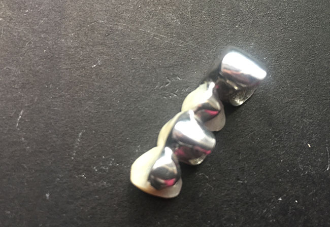 a) korony metalowe (korona protetyczna to taka czapeczka którą zakłada się na oszlifowany ząb)